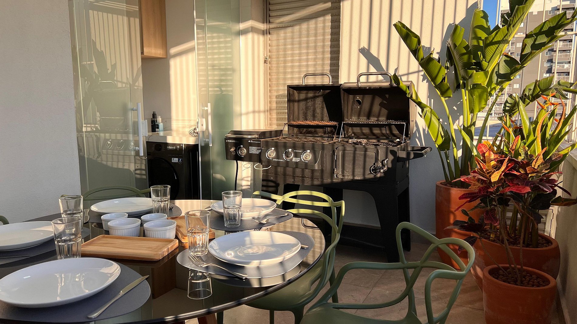 ○ Varanda ampla com churrasqueira